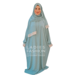 - إسدال سادة بلون منت جرين مع طرحة متصلة مزين بجبير ناعم على الأكمام والطرحة ، وسوستة أمامية رقيقة
