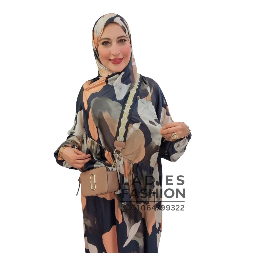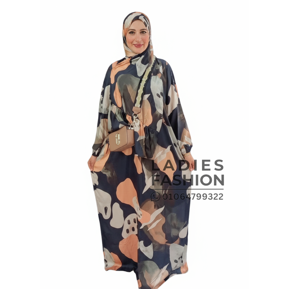 - إسدال بنقشة أنيقة وطرحة متصلة