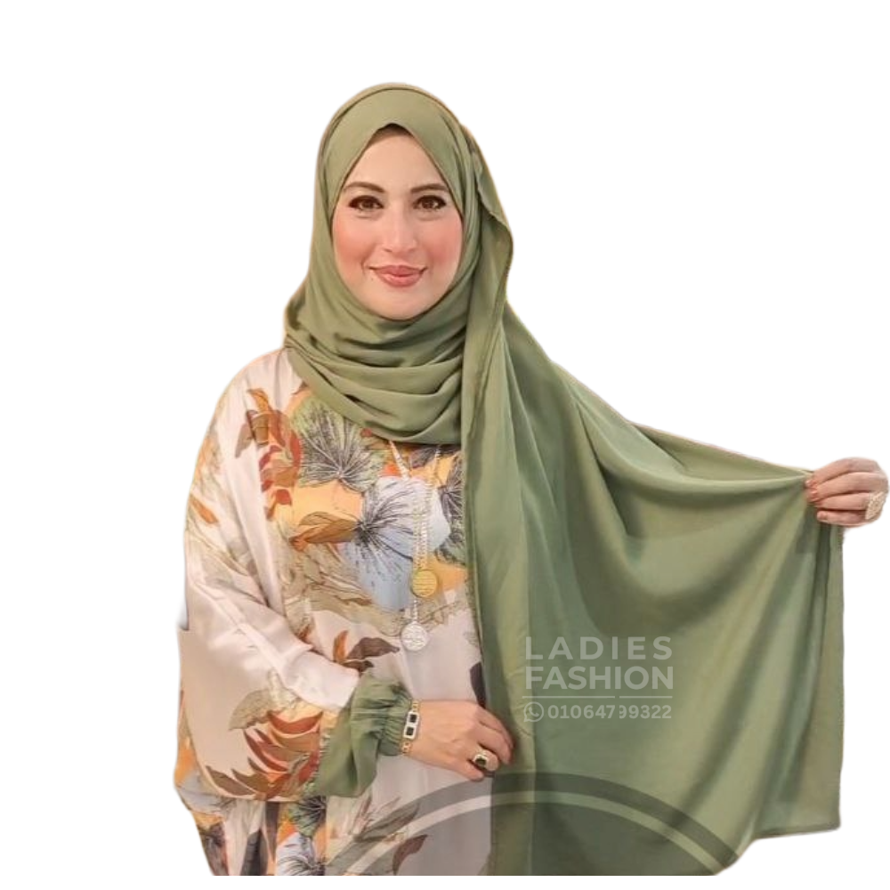 - ملحفة فخمة من خامة ستان حرير ناعمة على الجسم مع طرحة فسكوز