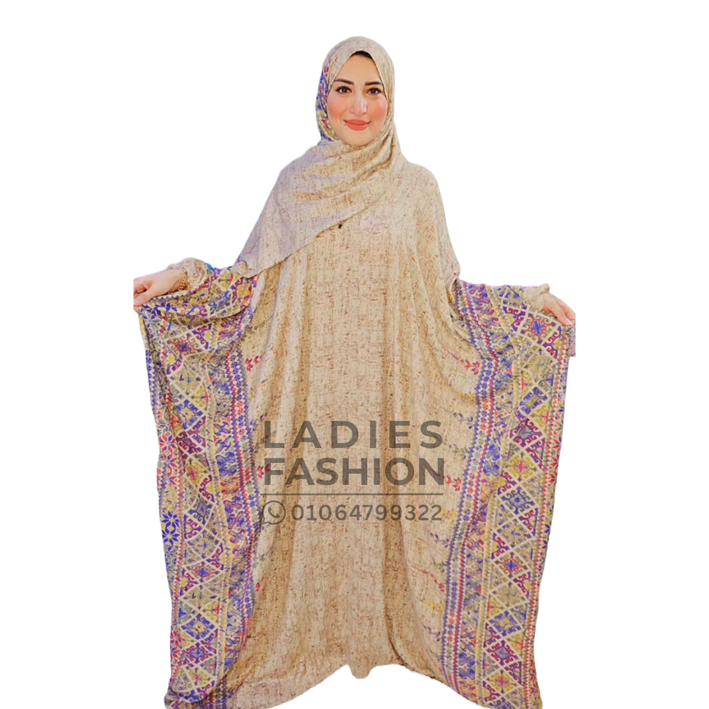 - إسدال أنيق بتصميم فراشة مع نقشات جانبية تضيف لمسة فخامة