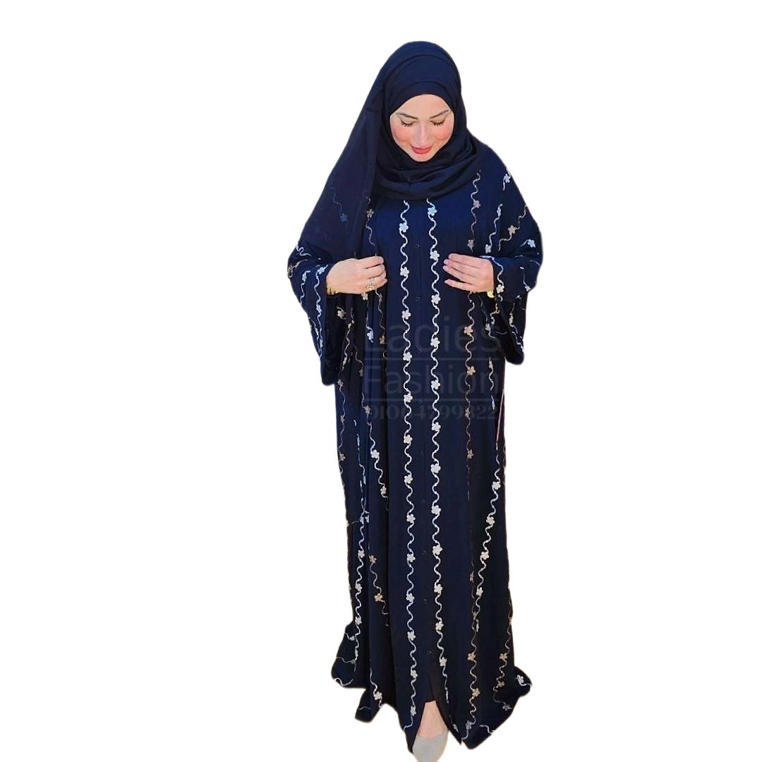 - عباية ملحفة خليجي بتطريز سلاسل ورد ناعم مع طرحة شيفون