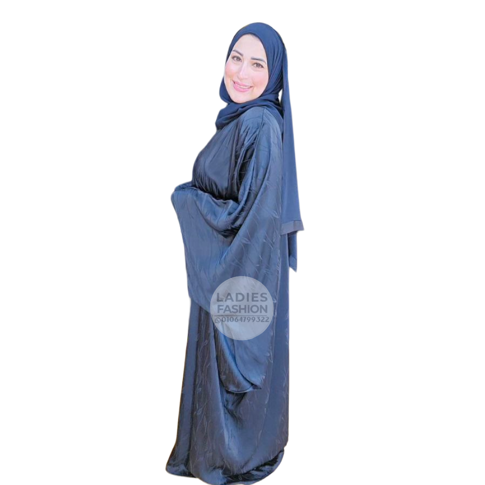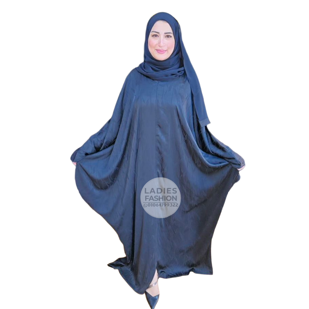 - عباية فاخرة من حرير مغسول أسود بنقشة بسيطة تضيف لمسة أنثوية راقية