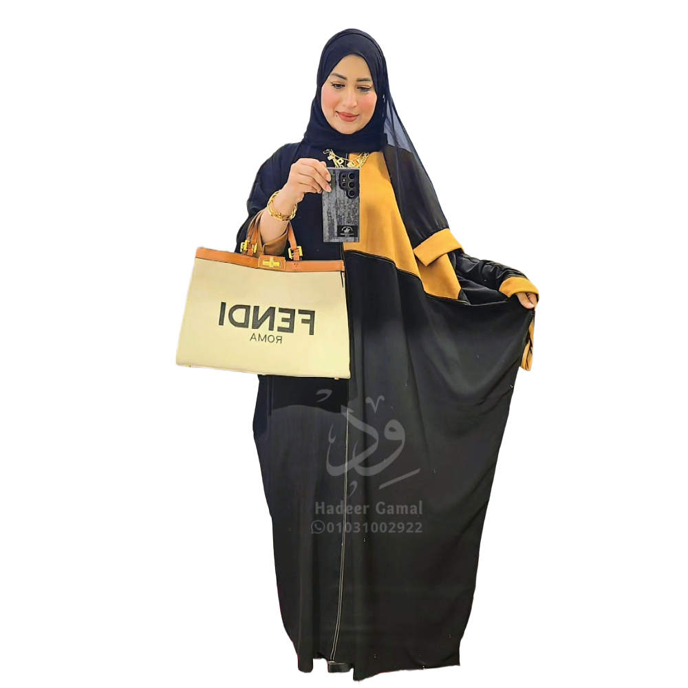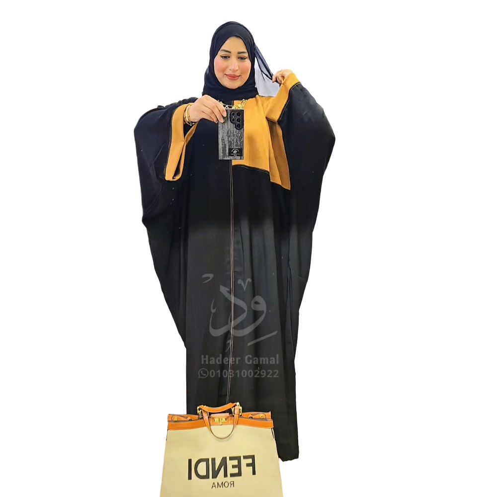 عباية سوداء مع تداخل لون هافان