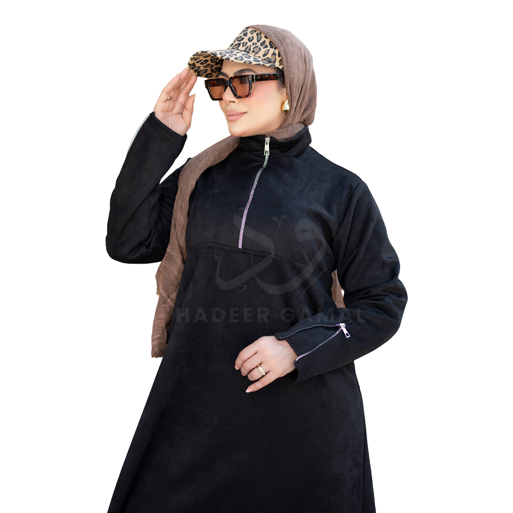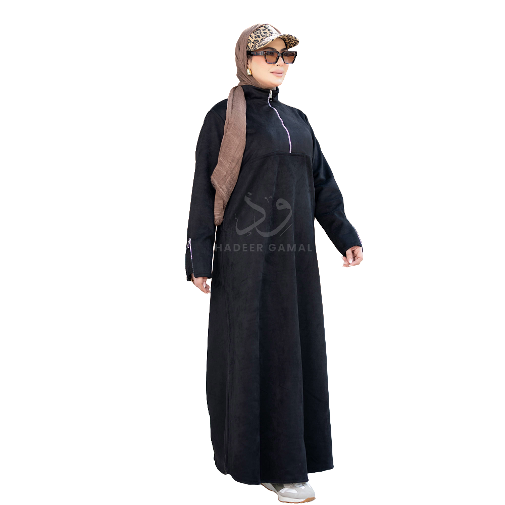 - عباية مودرن مزودة بسوستة أمامية وجيوب جانبية تضفي لمسة عملية