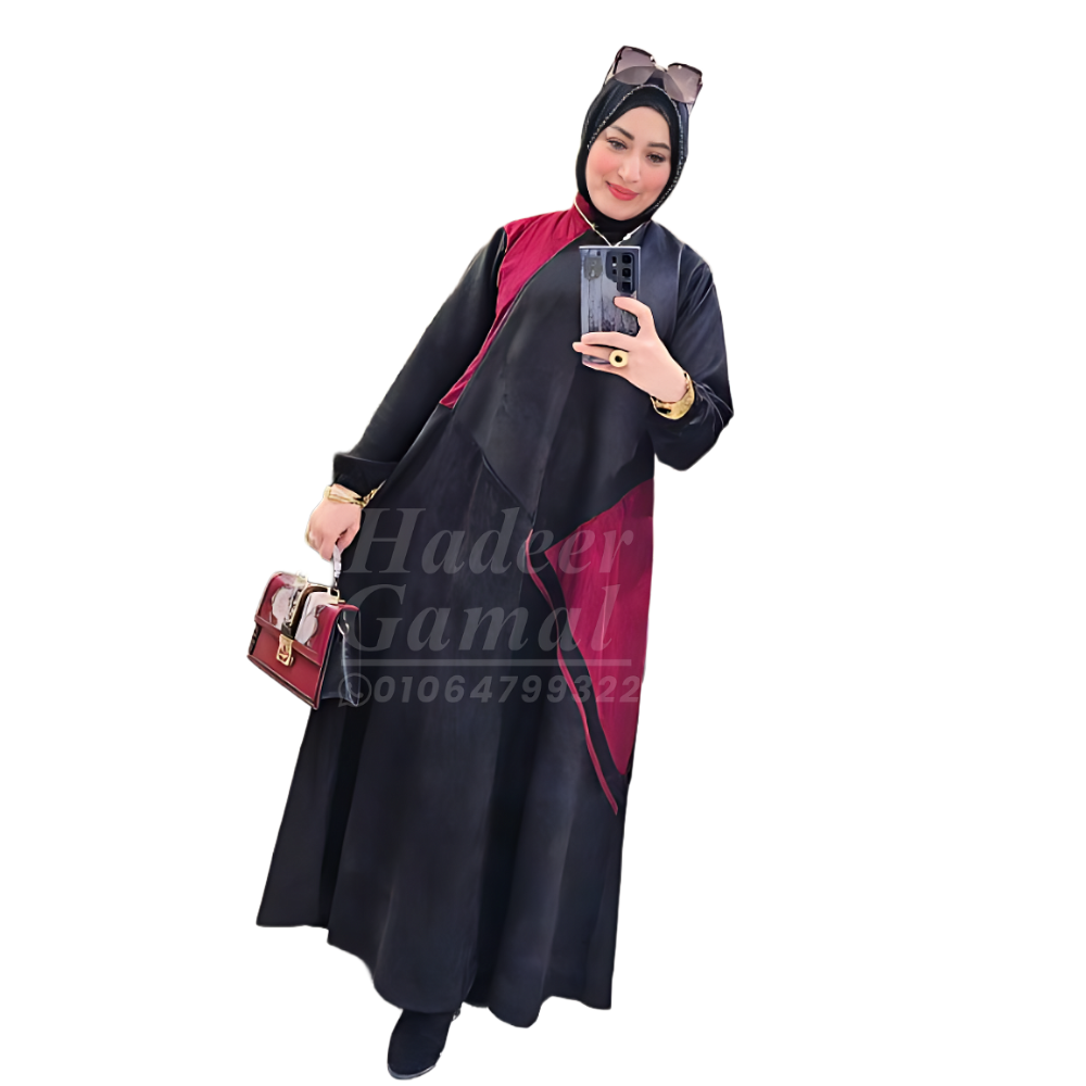 عباية بيزك بألوان كونتراست على الجانبين ،تصميم واسع ومريح يناسب الاطلالات اليومية