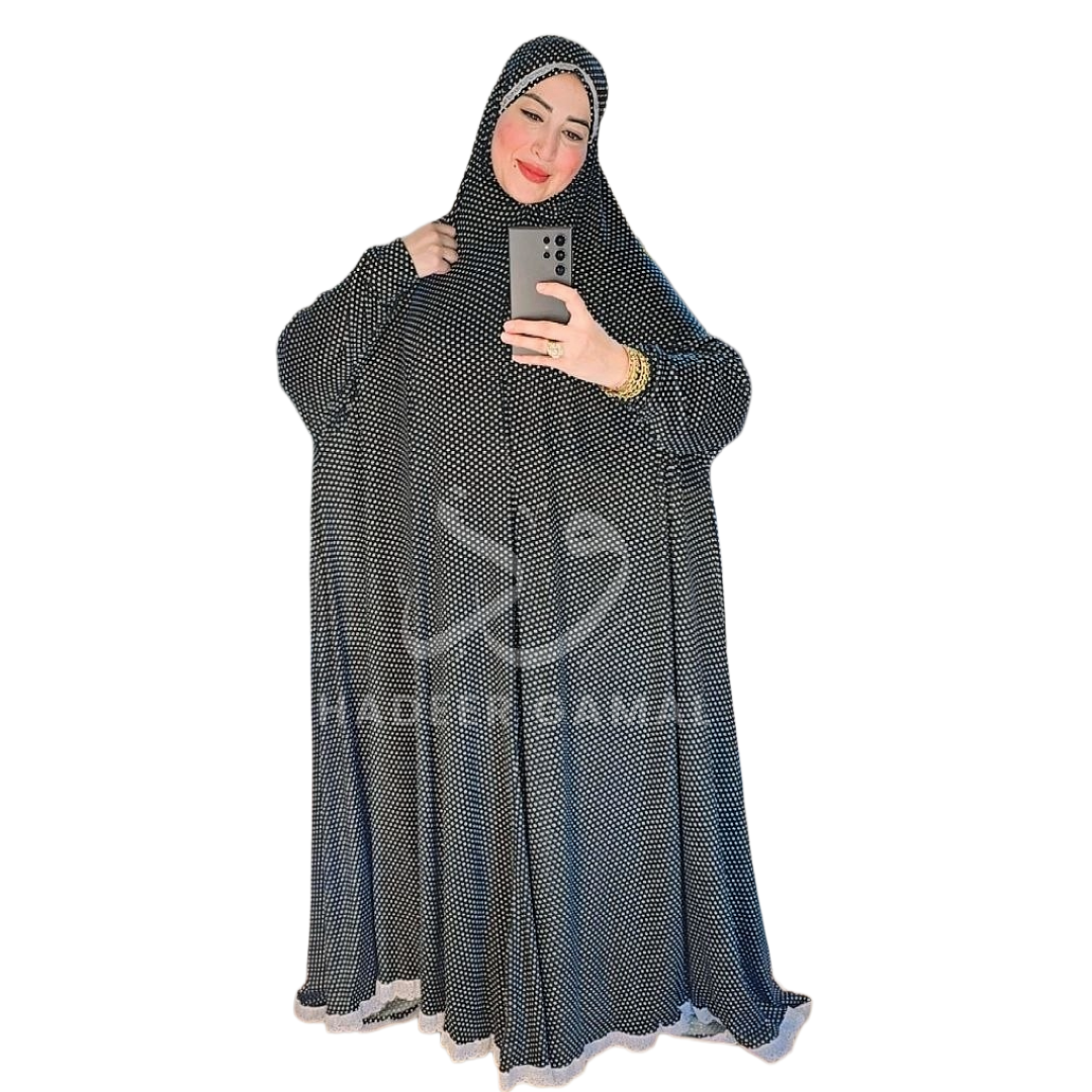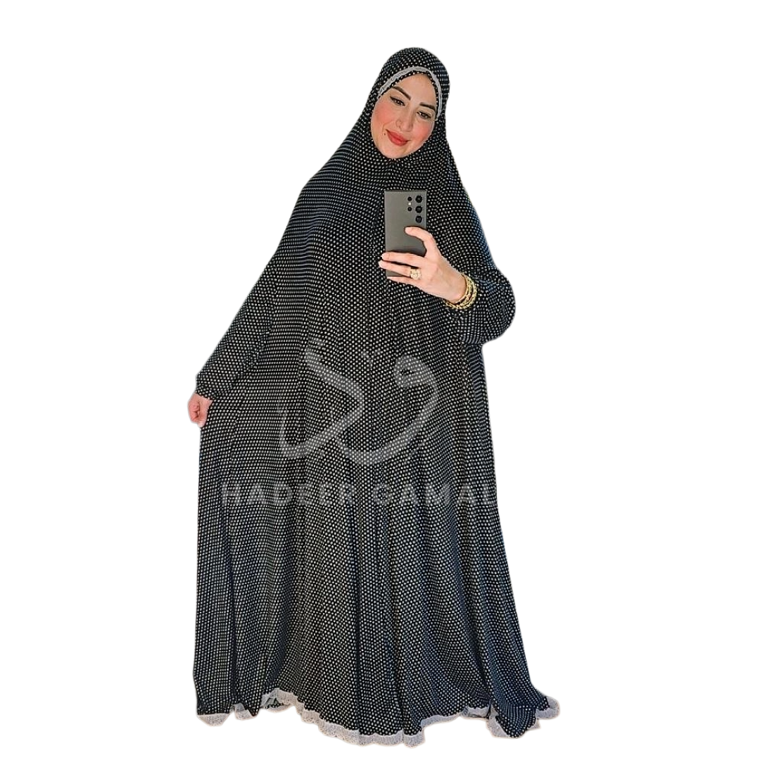 - إسدال ملحفة منقطة باللون الأسود