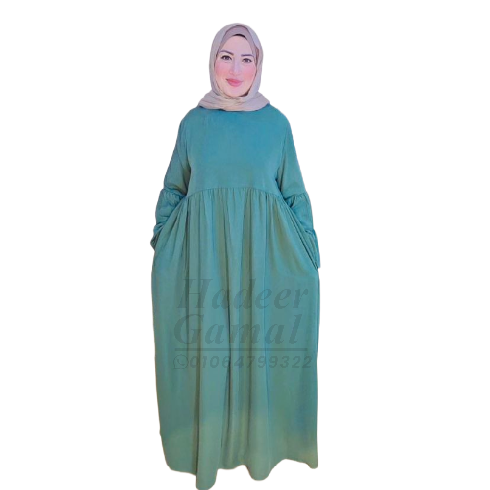 - عباية فستان بأكمام واسعه وانسيابية مع وجود استك داخلي عند المعصم يمنح ثباتا عمليا واناقة