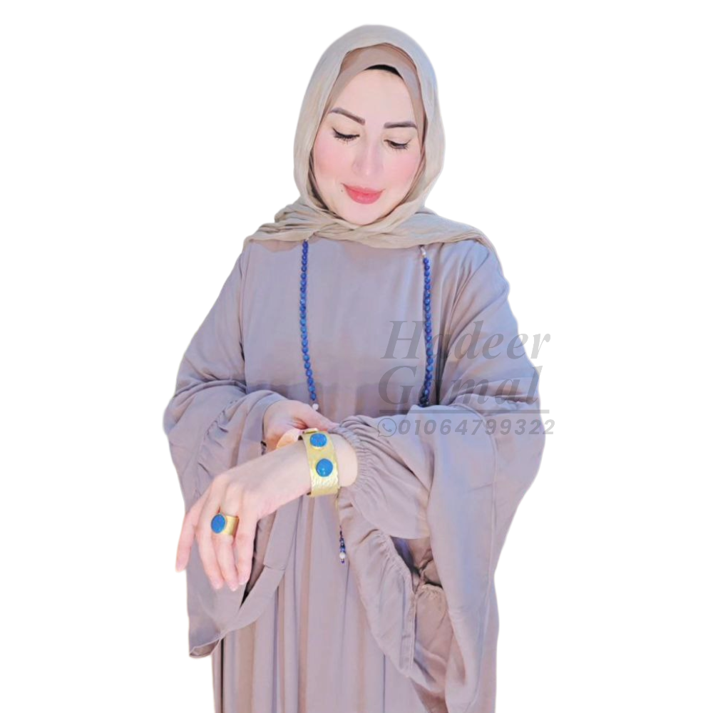 - عباية فستان بأكمام واسعه وانسيابية مع وجود استك داخلي عند المعصم يمنح ثباتا عمليا واناقة